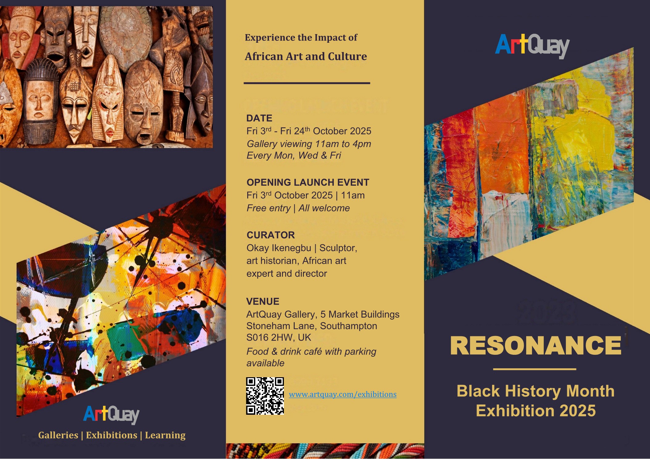 Resonance is a celebration of African art, culture, and creativity as part of Southampton’s Black History Month. The exhibition explores how colours, patterns, and symbols from African traditions continue to inspire, echo, and resonate across generations and communities.